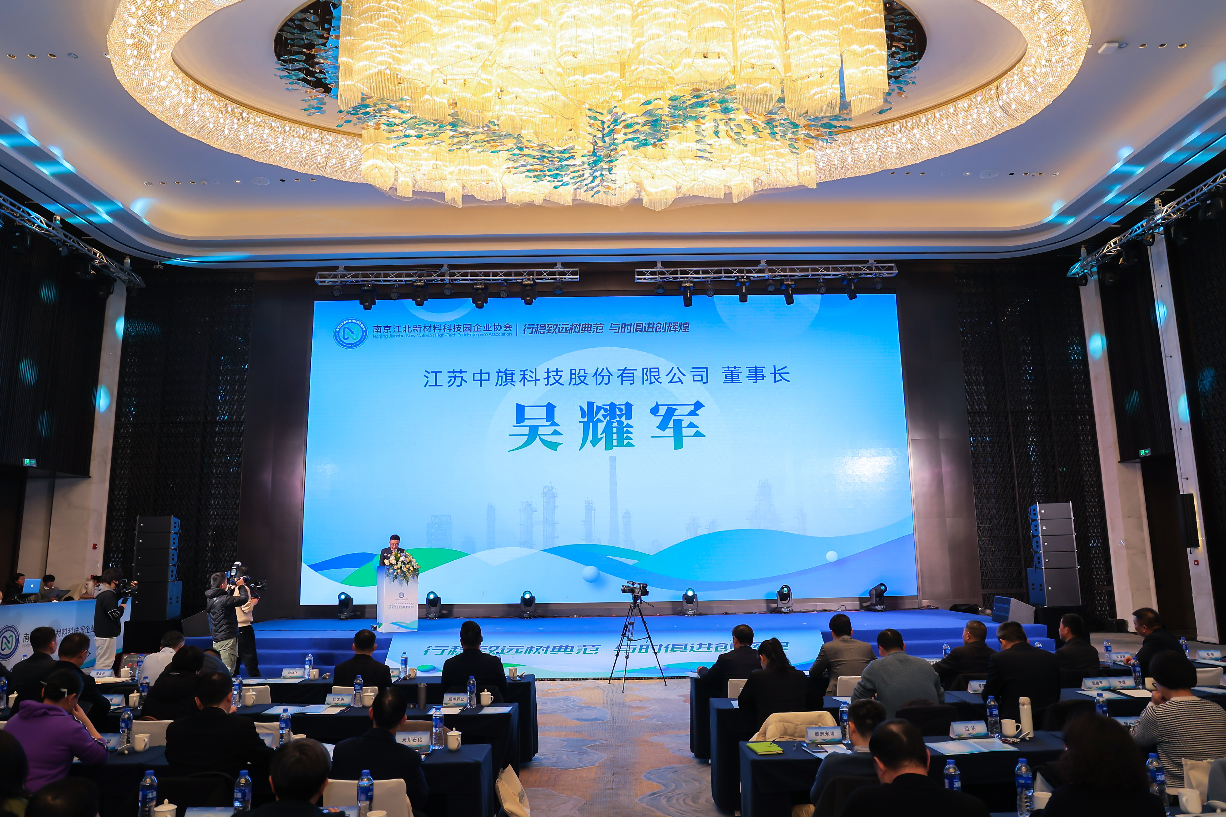 2024年1月25日,南京江北新材料科技園企業協會召開“打造領軍企業,推動高質量發展”大會。來自國家、省、市行業協會、高校院所、新材料科技園企業協會成員單位約200名代表參加會議。國家石油和化學工業聯合會副會長傅向升,江北新區黨工委委員、管委會副主任陶磊出席會議并致辭。公司董事長吳耀軍以“與時俱進二次創業,扎根江北再創輝煌”為主題做精彩發言。